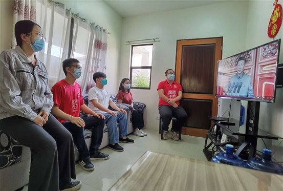 菲律賓項(xiàng)目人員在當(dāng)?shù)氐母綦x酒店收看直播