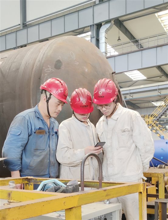 南通萬達(dá)鍋爐車間員工通過手機(jī)收看視頻直播