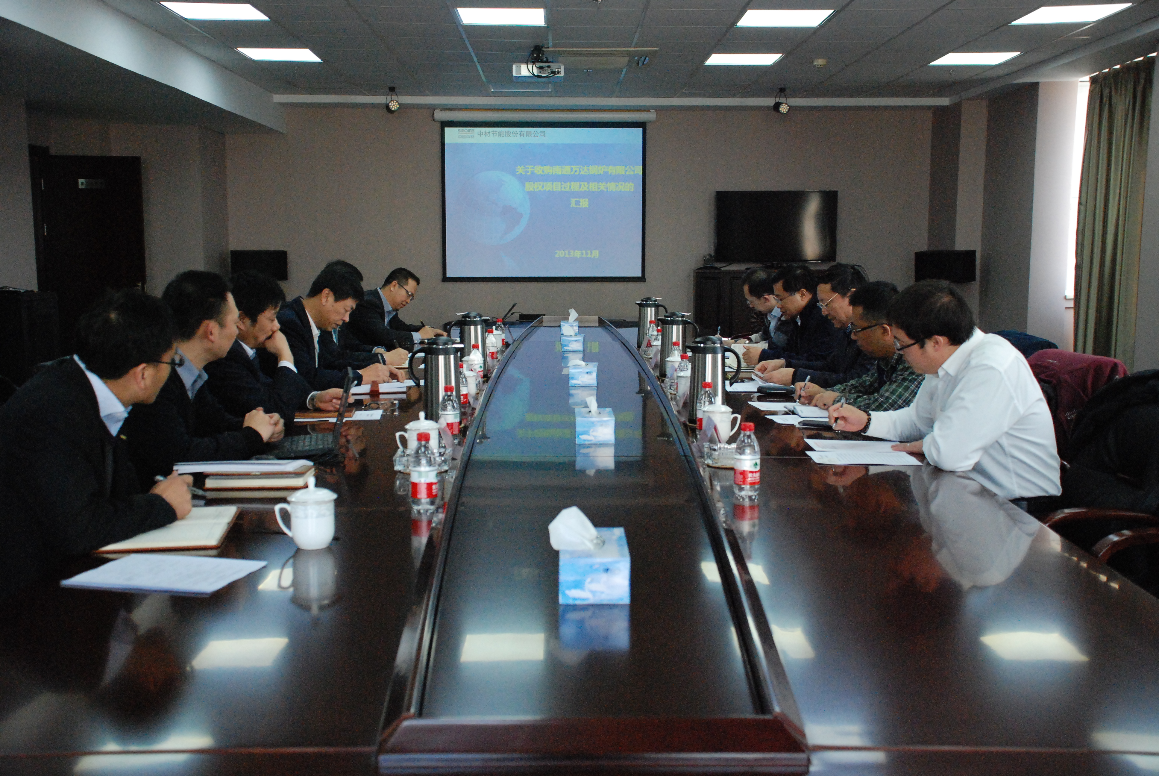 11月15日,國資委監事會第25辦陳琦良主任一行,在中材股份副總裁余明清、集團投發部彭雪飛經理的陪同下,到中材節能調研。公司董事長張奇、總裁胡也明、黨委書記劉習德、副總裁兼董事會秘書楊澤學、證券投資部副部長黃劍鋒等參加專題匯報會。